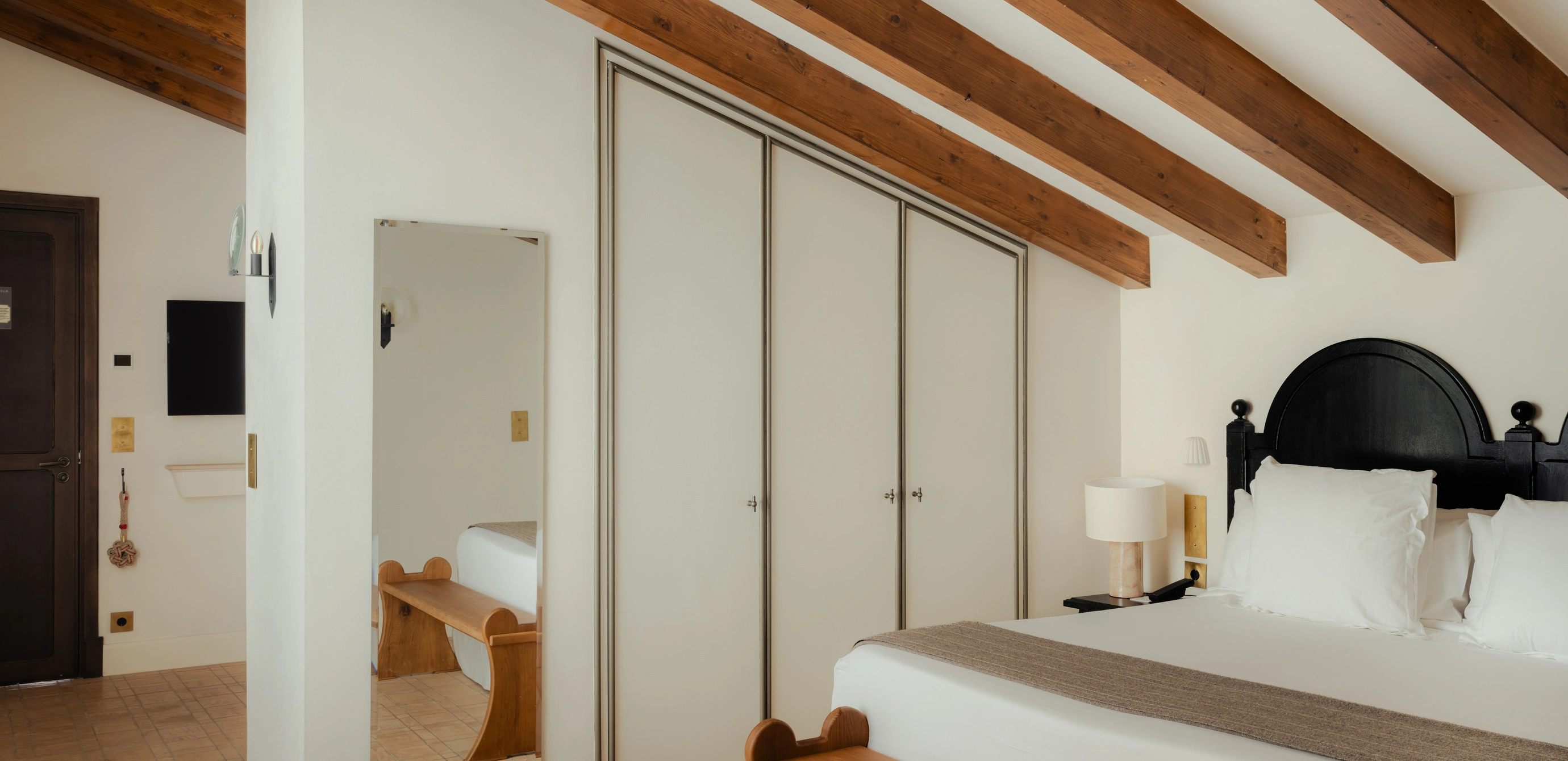 Our Medium rooms are thoughtfully designed and well equipped with premium amenities. They respectfully follow the original design of the building with original characteristics and some with beamed ceilings. They can be connected to an adjacent space to create a two-bedroom apartment.